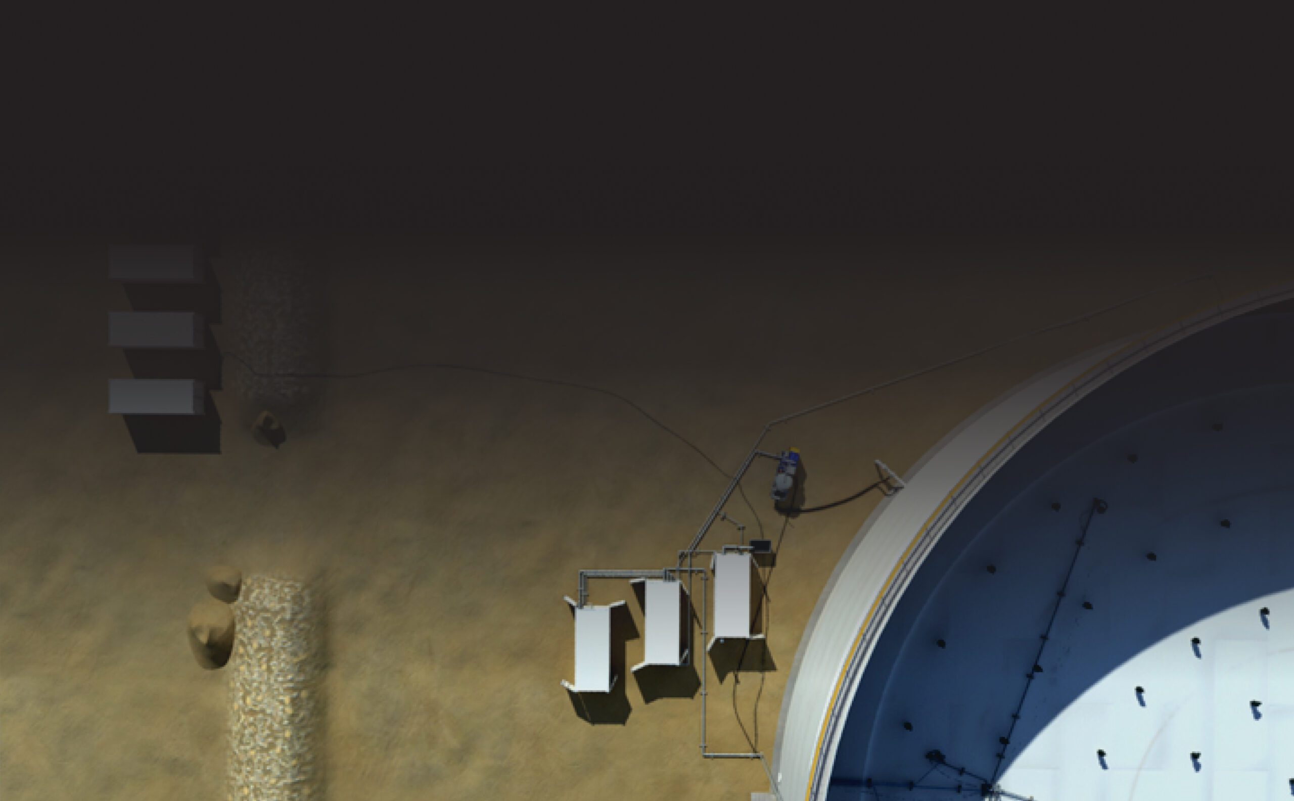 The modules stand on the ground beside the tank. They contain the equipment required for desludging, recirculating media and separating sludge.